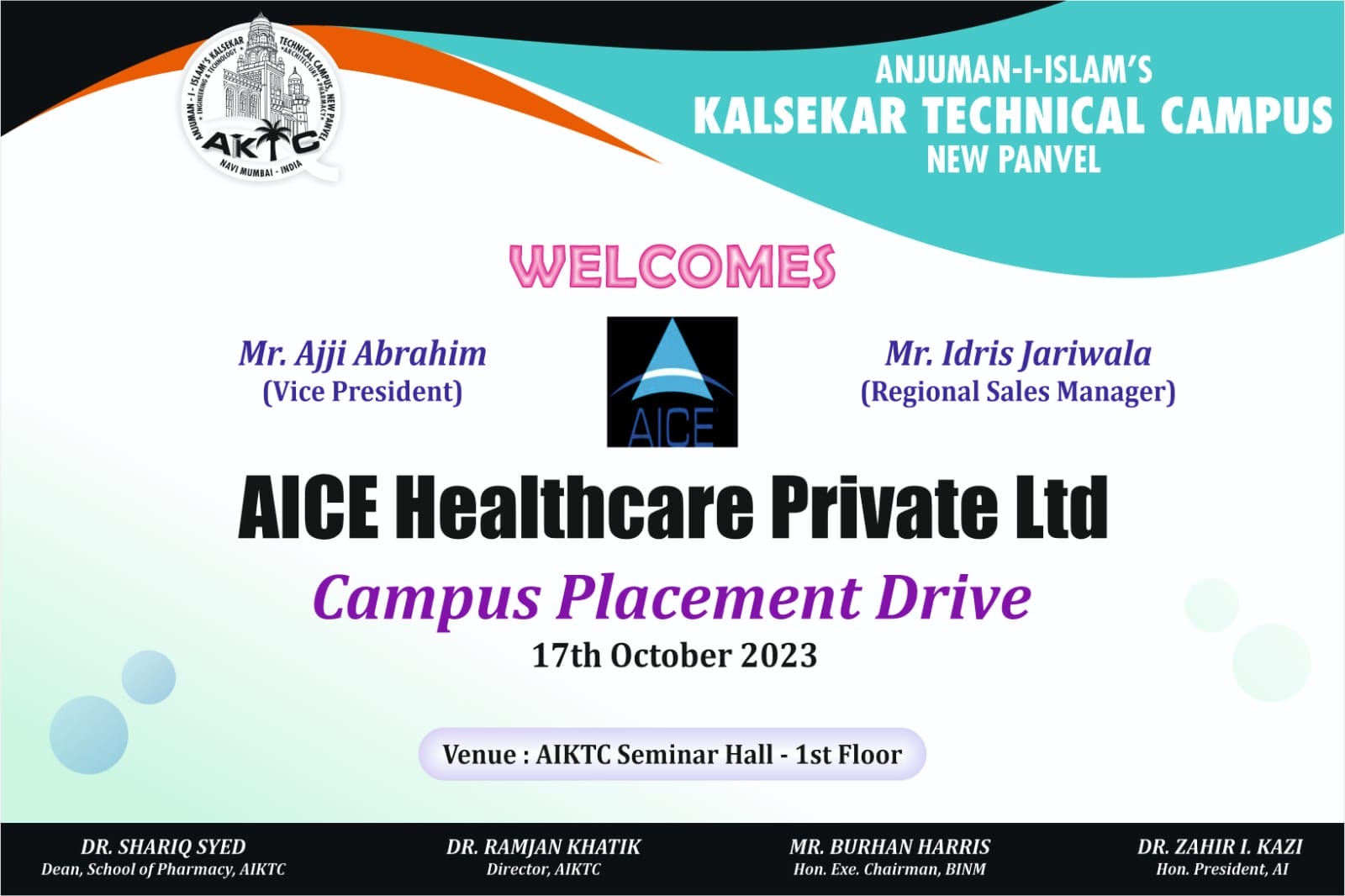 AICE Healthcare Pvt Ltd . Company and team visited AIKTC-SOP . The VP Mr Aji and Regional Sales Manager Mr. Idris Jariwala along with coordinator Mrs. Deepali Deshmukh conducted orientation to the aspirants and took interviews for the 2023 passed out students.