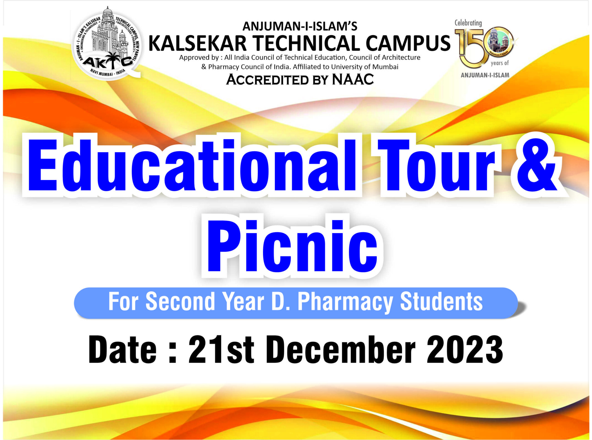 On December 21, 2023, an educational tour and picnic were arranged for second-year D Pharmacy students from AIKTC-School of Pharmacy. The destination included Imagica and the surrounding areas of Khopoli, providing an enriching and enjoyable experience for the participants.