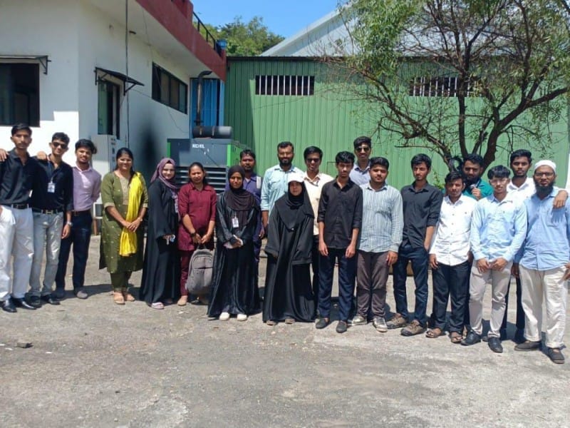 The final-year Electrical Engineering students visited Sunny World Solar Power Plant, a 700 kW grid-connected solar facility located at Talegaon–Kamshet. The plant is a significant example of sustainable energy utilization and advanced PV system technology. The visit was coordinated by the faculty of the Electrical Engineering Department. During the session, Er. Bhushan, the plant in-charge, explained the overall working of the solar power plant. He elaborated on the design aspects, including solar panel arrangement, inverter operation, string configuration, and grid synchronization process. Students also gained insights into maximum power point tracking (MPPT) techniques, the importance of solar irradiance monitoring, and power quality management.