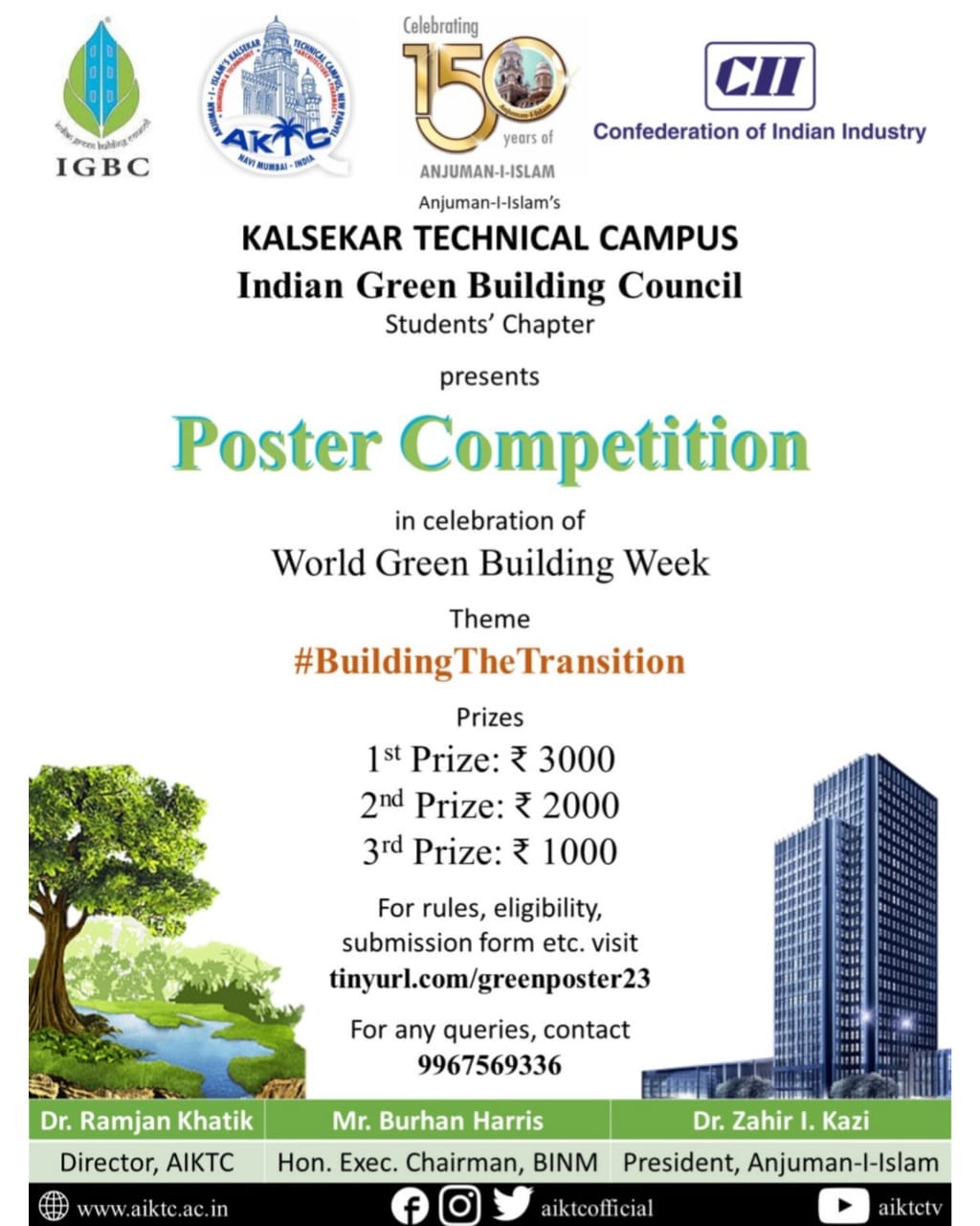 The Student's Chapter of Indian Green Building Council (IGBC) at Anjuman-I-Islam's Kalsekar Technical Campus (AIKTC), is organizing a POSTER COMPETITION on the above theme.