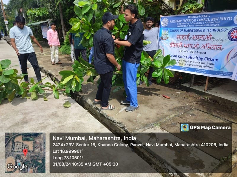 Report on Cleanliness Drive held at AIKTC Panvel on 31st August 2024 Attendees: Prof Ziyaul Haque, Dr Shivaji Pawar, Mr Yusuf Mulla, Dr Maryam Qureshi Activity: On 31st August 2024, Anjuman-I-Islam's Kalsekar Technical Campus School of Pharmacy, under the NSS program, organized a Cleanliness Drive to promote a disease-free city. The theme of the activity was "सफाई अपनाओ, बीमारी भगाओ अभभयान" ("Adopt Cleanliness, Drive Away Disease Campaign"), held from 1st July to 31st August, with slogans like "Clean Cities, Healthy Citizens" and "अवलंब करून स ् वच्छतेचा, नयनाट करू रोगांचा" ("Embrace Cleanliness, Eliminate Diseases"). The drive was conducted in collaboration with the Panvel Municipal Corporation and was graced by the presence of Mr. Mangesh Chitale, Administrator and Commissioner of PMC. A total of 32 third-year B.Pharm students participated in the event. This activity effectively instilled the principles of the Clean India Movement by accepting the challenge in a practical manner. The students were very enthusiastic about the initiative and are keen to continue participating in such activities in the future.